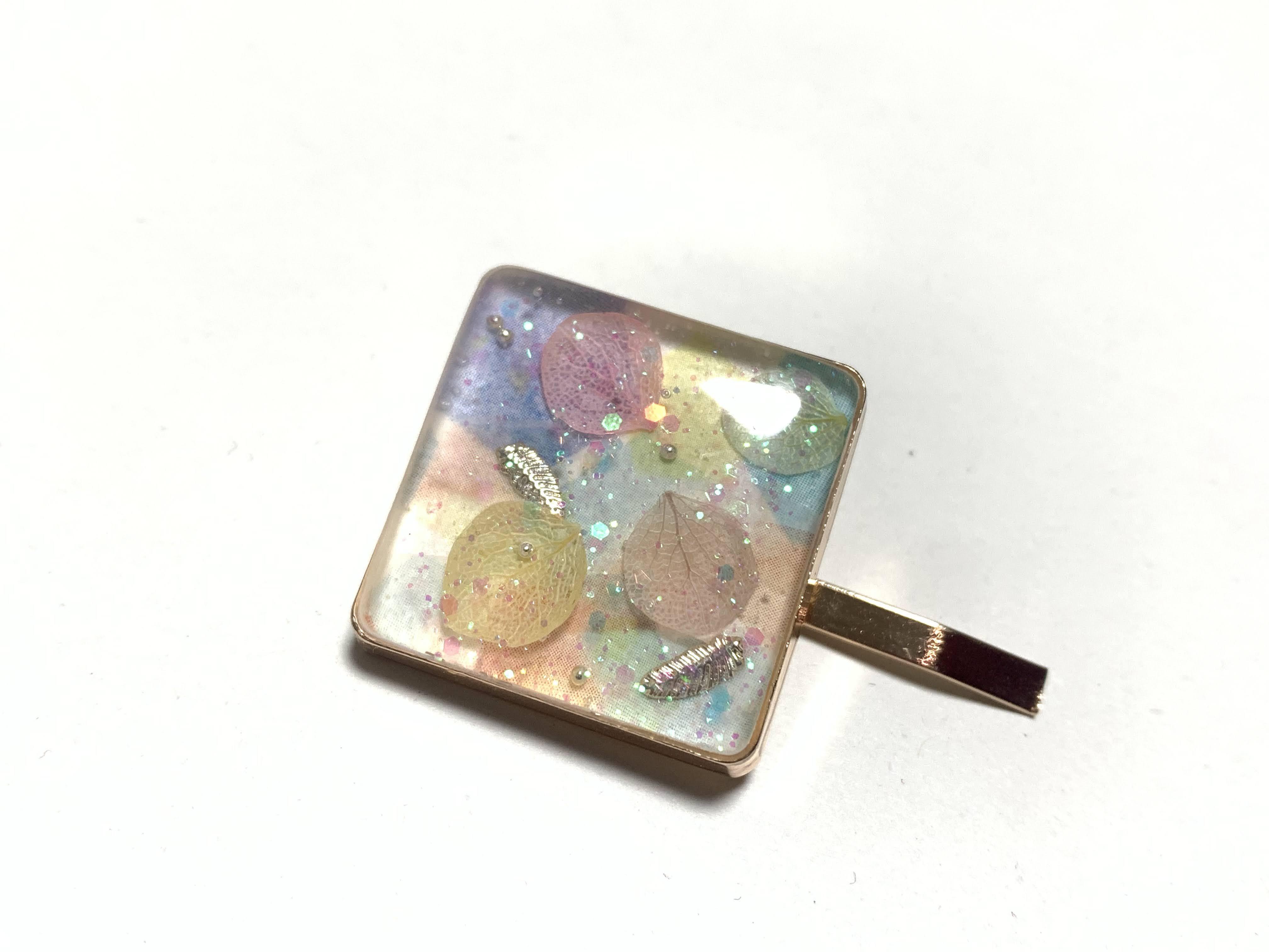 こちらの商品はレジン作家「えふらと」さんの作品です。パステルカラーの綺麗なレジンに紫陽花のドライフラワー入り。透明感と柔らかな色のデザインが素敵な商品です。