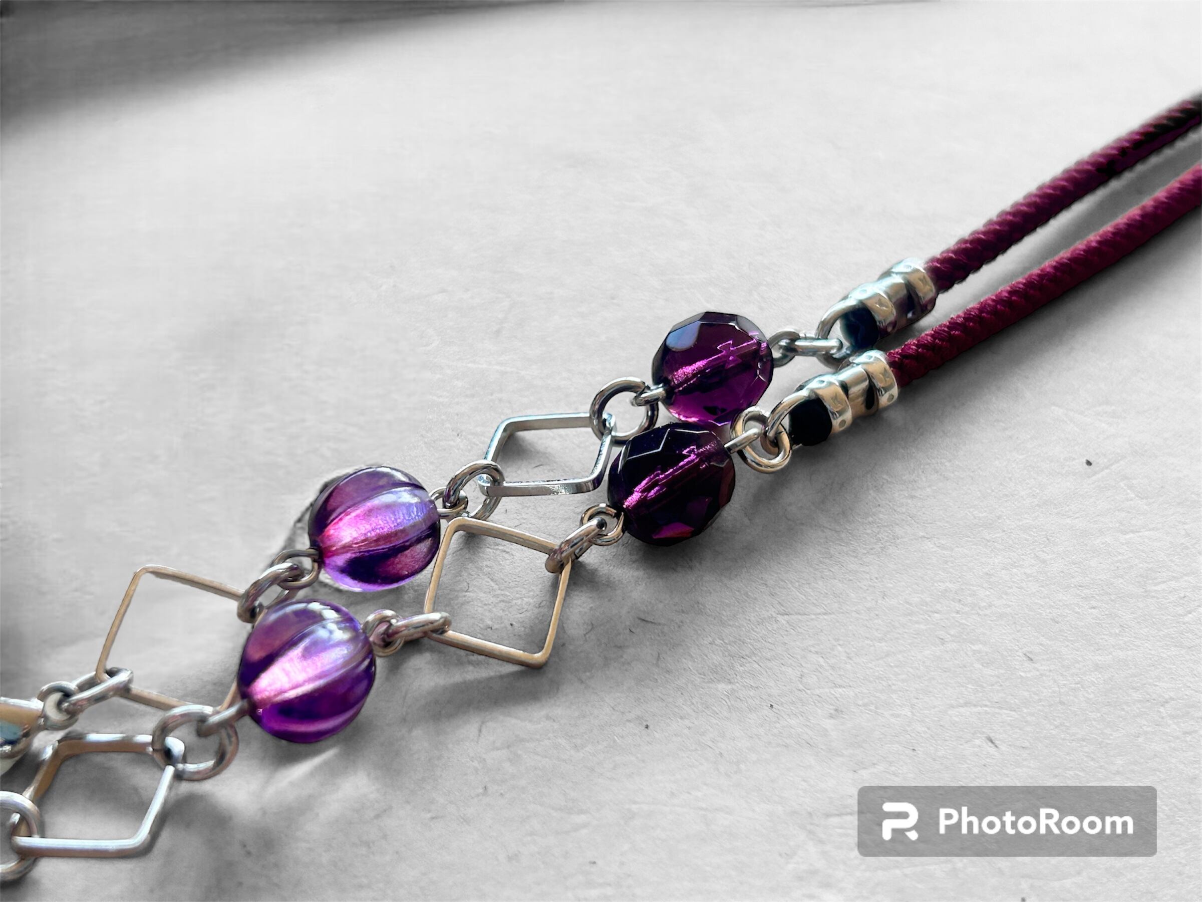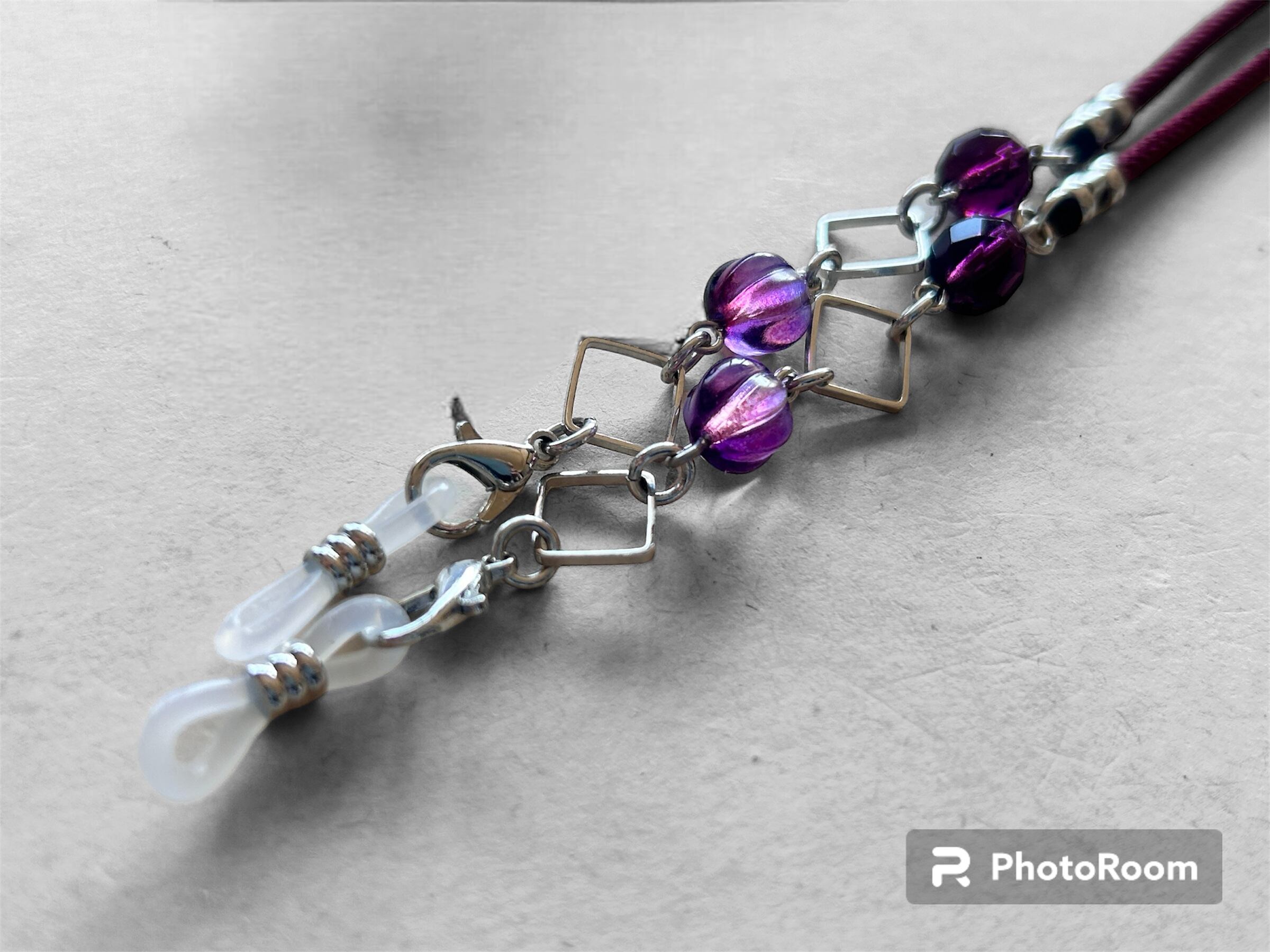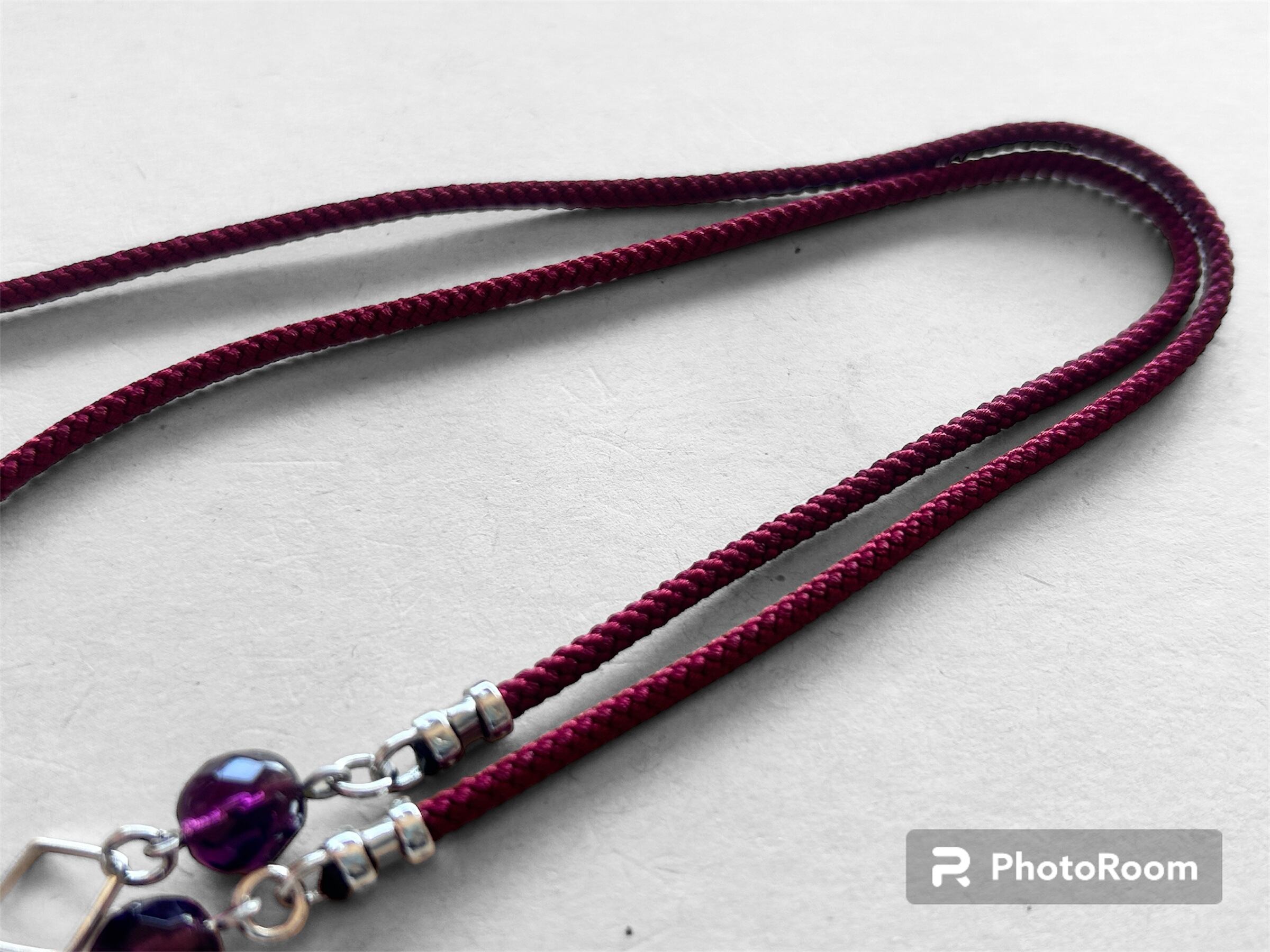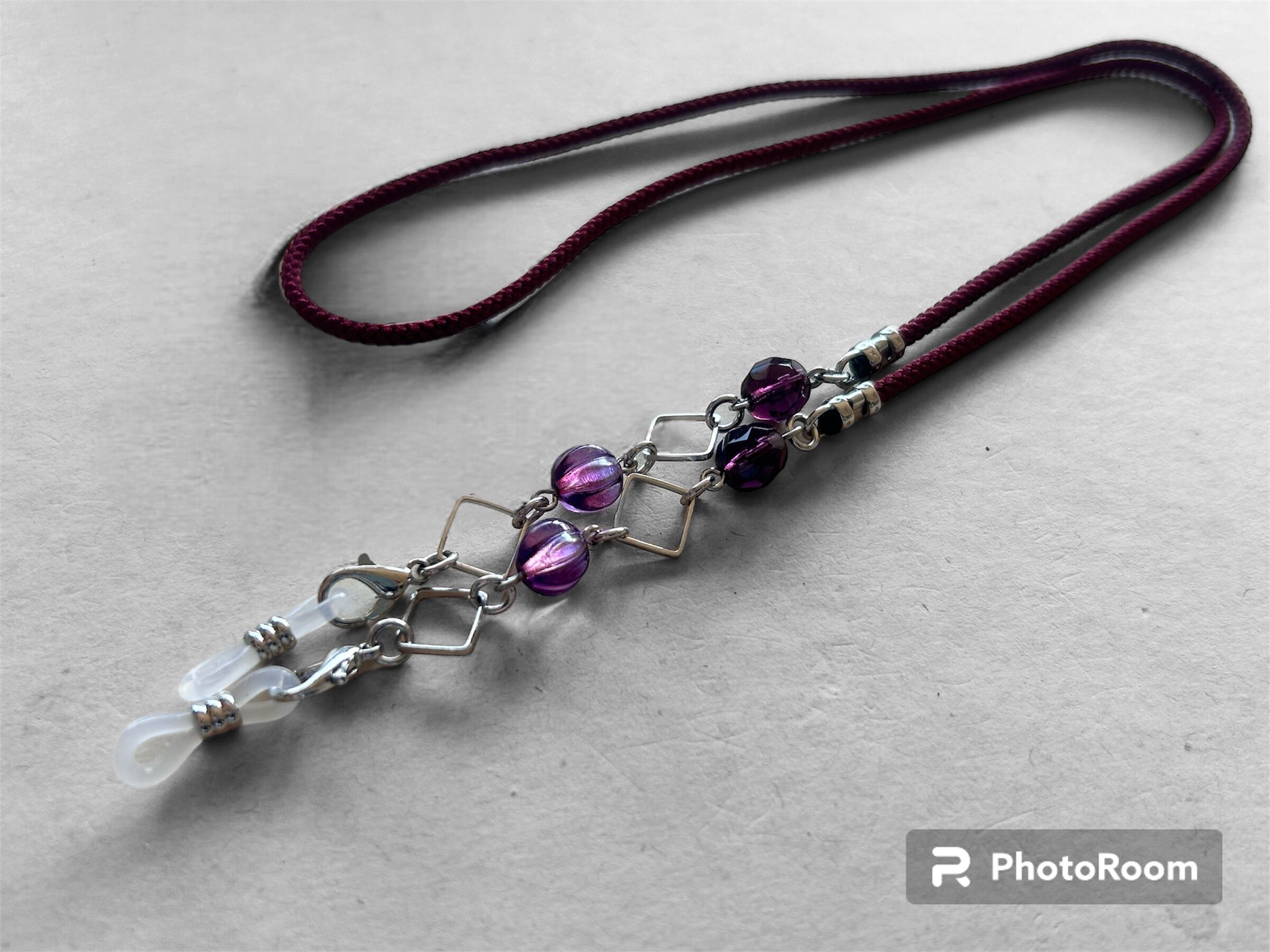 ワインレッドのアジアンコードを使用したメガネチェーン、マスクストラップです。