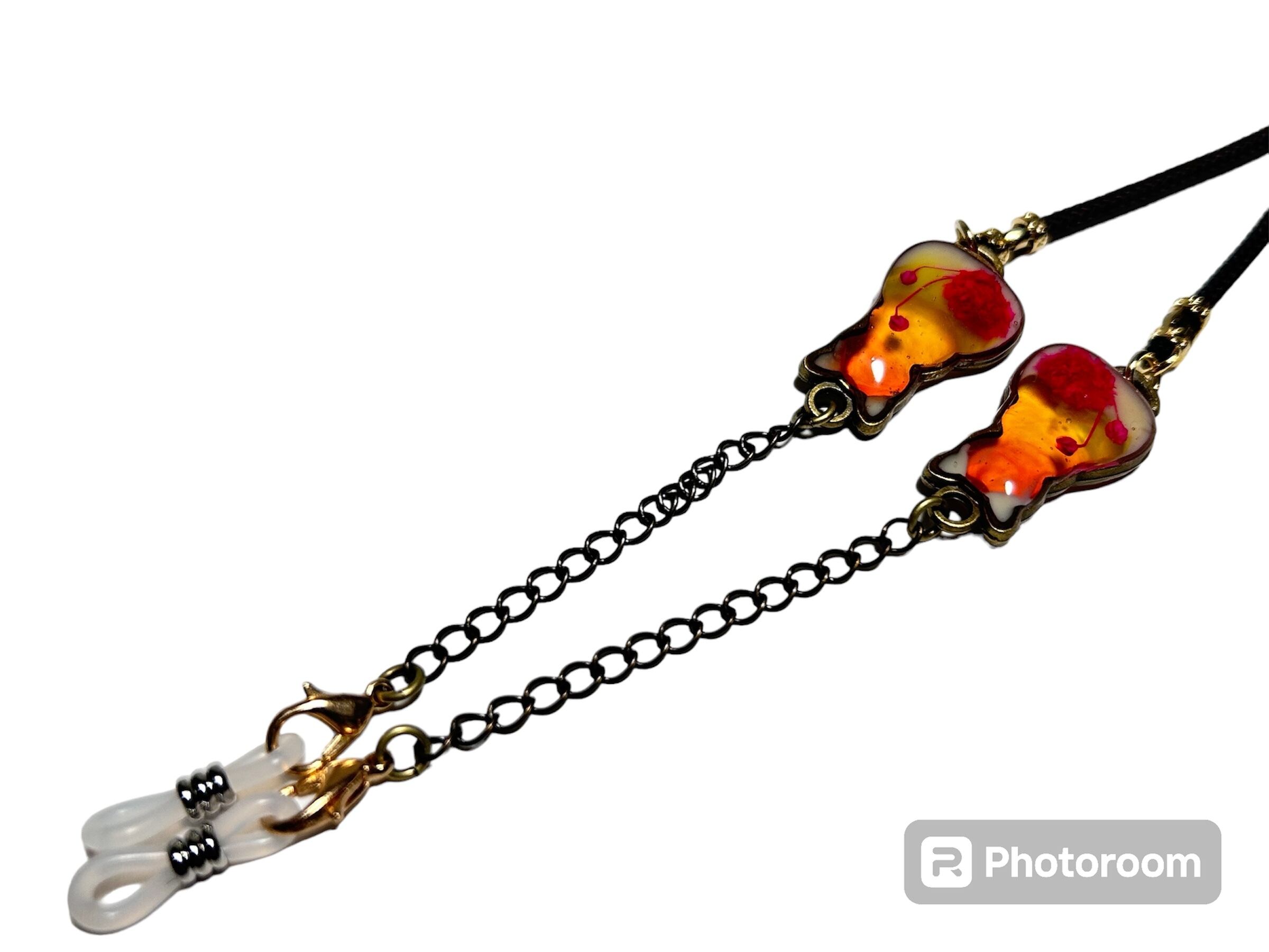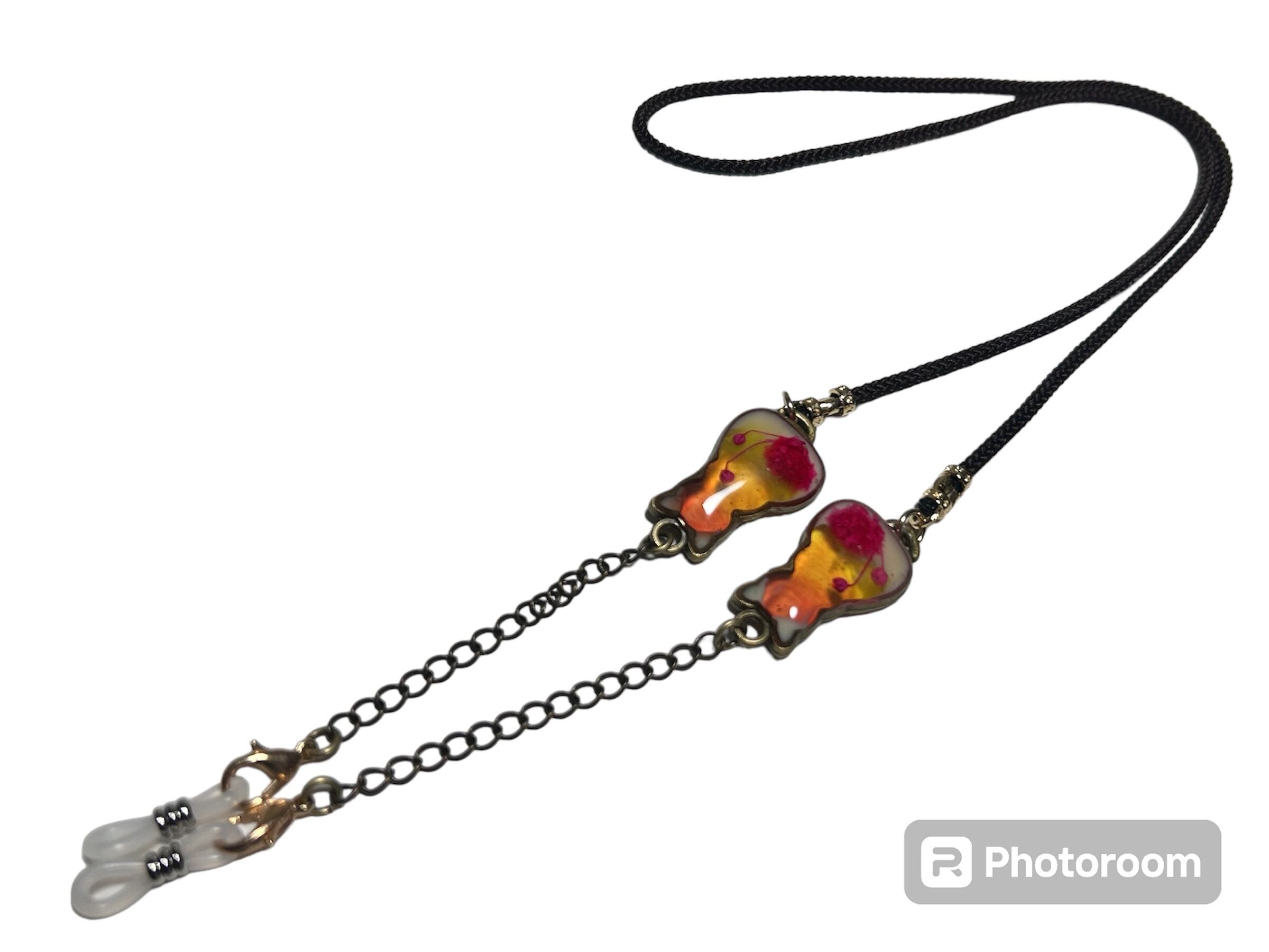 夕焼けニャンコ!ドライフラワー入りレジン メガネチェーン グラスコード マスクストラップ 約68cm
